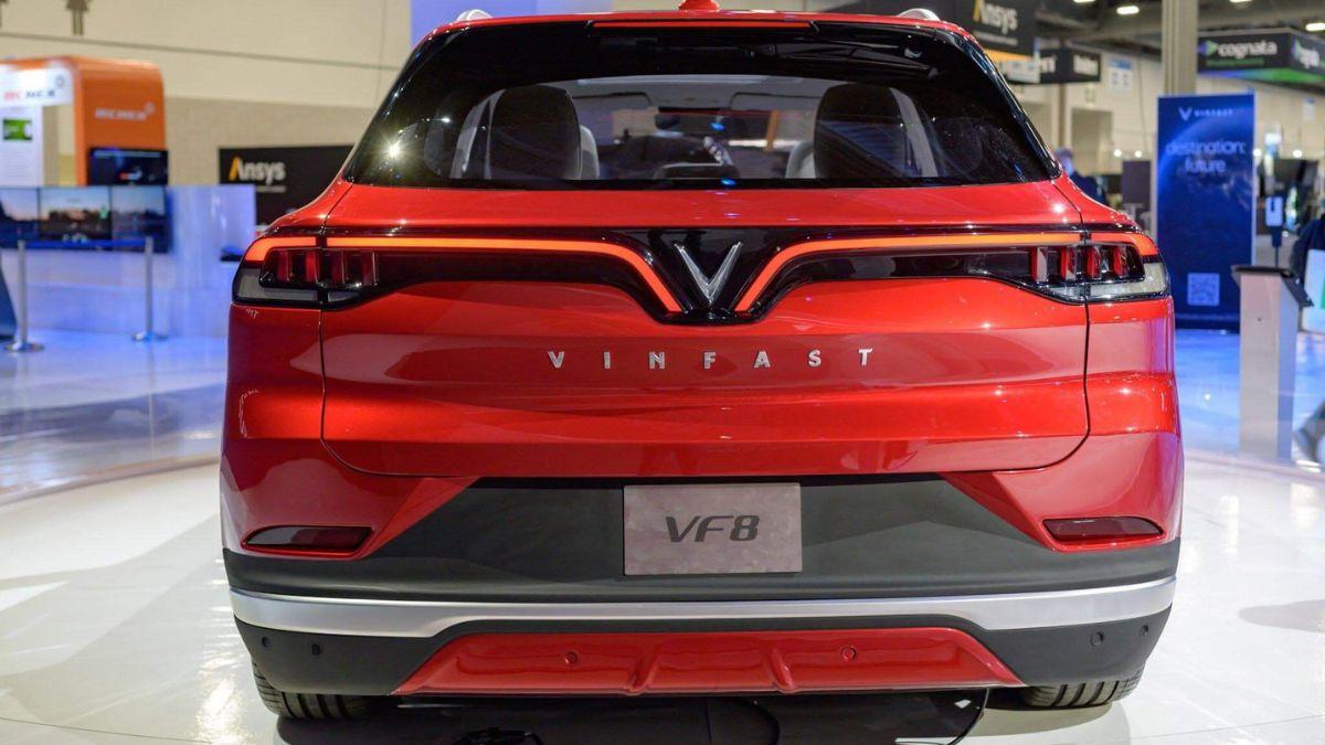 Đuôi xe VinFast VF8 với những đường nét thiết kế cứng cáp, nhấn mạnh sự khỏe khoắn thường thấy trên một mẫu SUV-D.